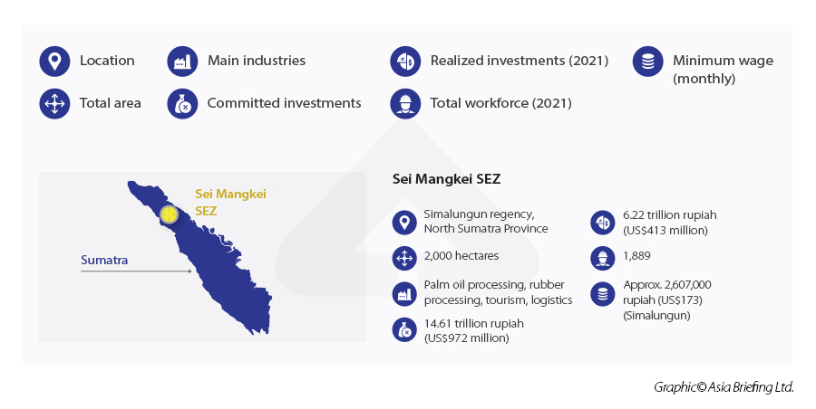 Sei Mangkei SEZ has exported over 26 trillion rupiah (US$1.7 billion) worth of goods since its establishment in 2015, mainly for palm oil and palm oil products. The North Sumatra Province is one of the leading palm oil-producing regions in the country.