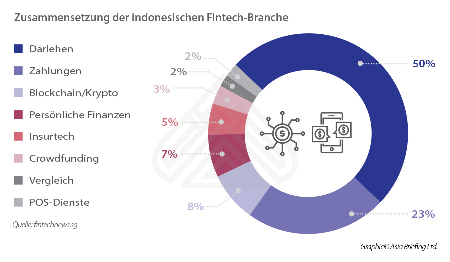 Die indonesische Fintech-Branche ist eine der wettbewerbsfähigsten und dynamischsten in ASEAN, was durch das Entstehen von vier sogenannten Unicorns und einem Decacorn in der Branche belegt wird. Das Land beheimatet 20 Prozent aller Fintech-Unternehmen im südostasiatischen Wirtschaftsraum. Es wird erwartet, dass diese Region in den nächsten fünf Jahren einen Umsatz von 8,6 Milliarden US-Dollar generiert.