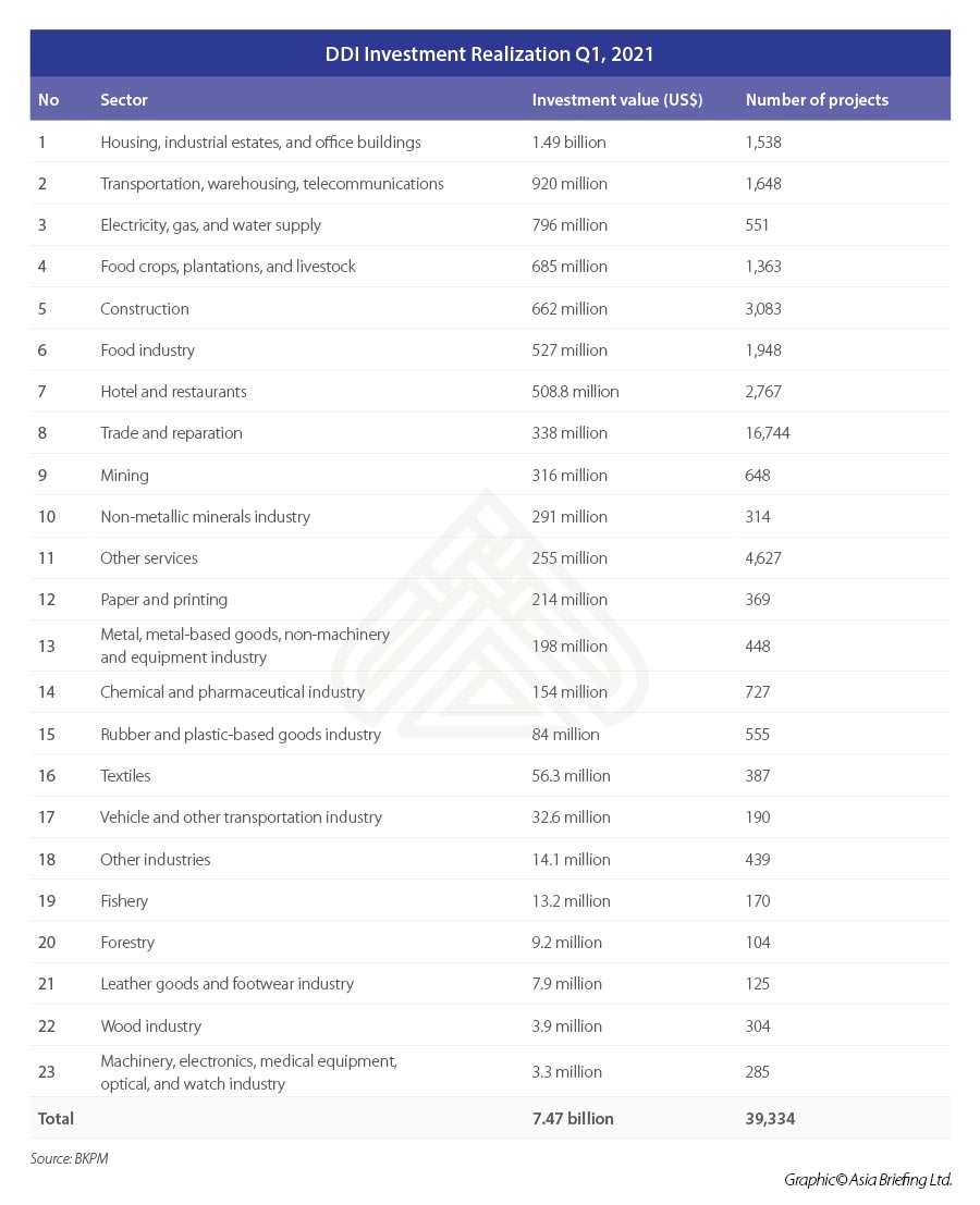- The government has targeted a total investment realization of 900 trillion rupiah (US$62.2 billion) for 2021.