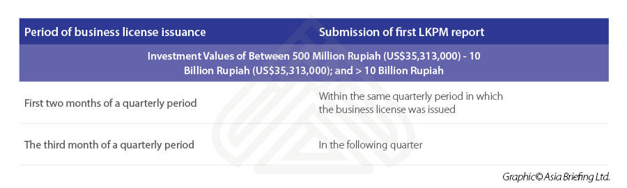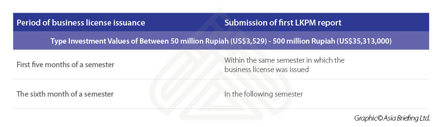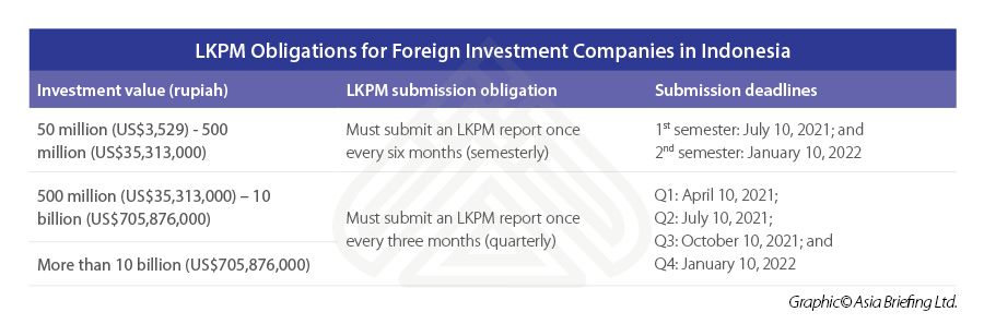 Most foreign investment companies, depending on the value of their investments, are obligated to submit an LKPM report. The table highlights below.