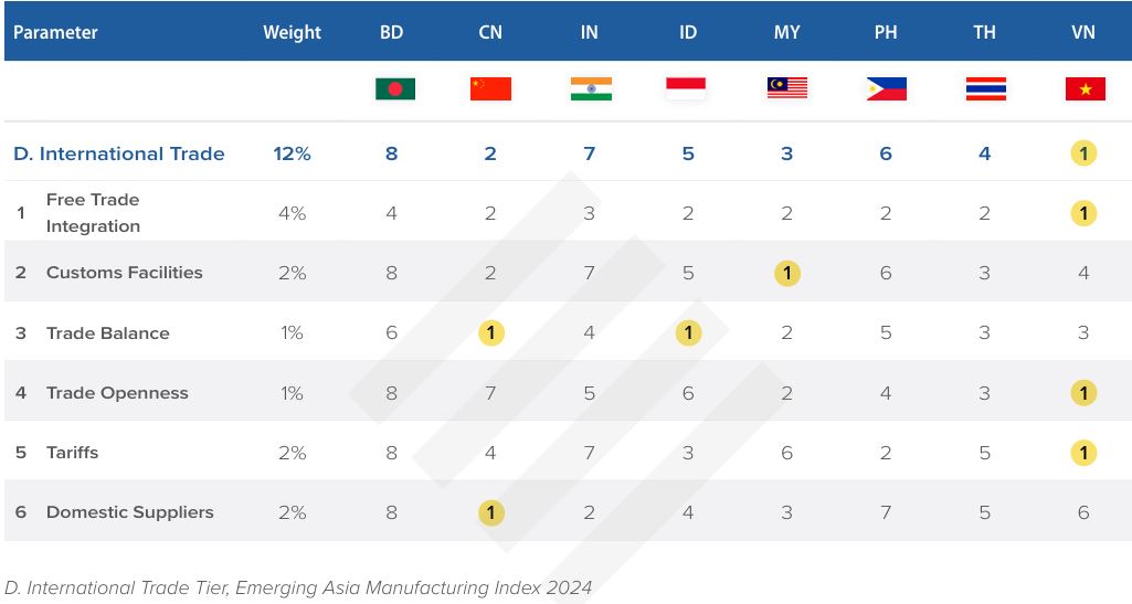 In the report, Malaysia’s overall international trade rank was third. The country’s customs facilities were ranked first, trade balance was ranked second, and trade openness was also ranked second.