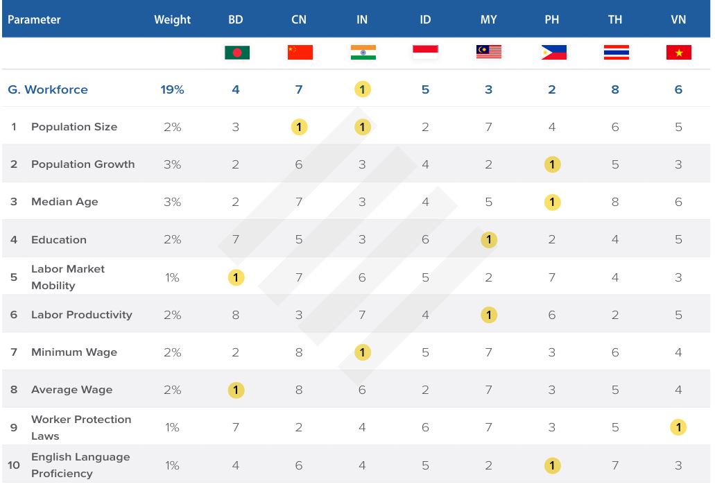 The assessment in the report relies heavily on evaluating 48 specific parameters structured across eight key criteria: economy, political stability, business climate, global trade, taxation, infrastructure, labor force, and innovation.