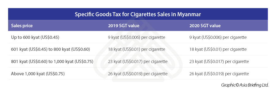 The UTL 2020 introduces higher specific goods tax (SGT) rates for cigarette products.