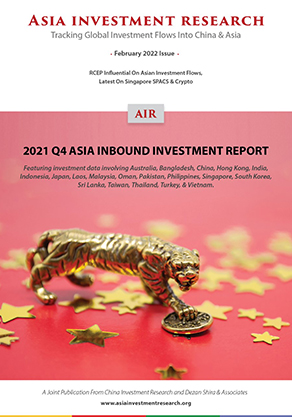 This article has been extracted from the February issue of Asia Investment Research, to be released on Thursday, February 17. The issue contains unique data concerning Q4 Asian inbound investment flows and includes data concerning Australia, Bangladesh, China, Hong Kong, India, Indonesia, Japan, Laos, Malaysia, Oman, Pakistan, Philippines, Singapore, South Korea, Sri Lanka, Taiwan, Thailand, Turkey, & Vietnam. To reserve your early bird a discounted copy for just US$100, please click